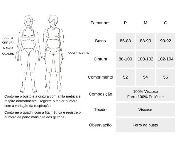 TABELA DE MEDIDAS: