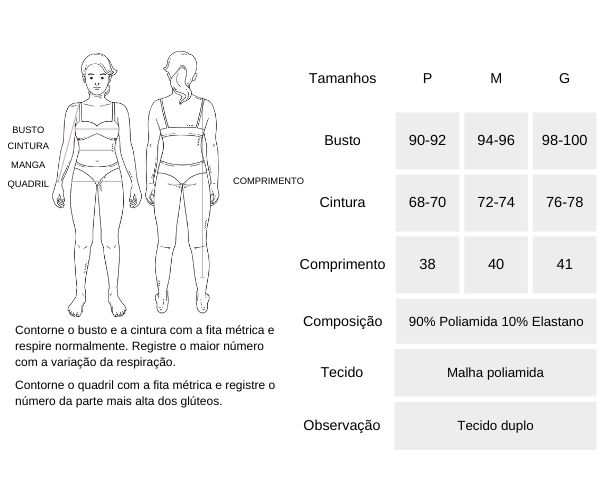TABELA DE MEDIDAS: