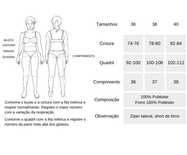 TABELA DE MEDIDAS: