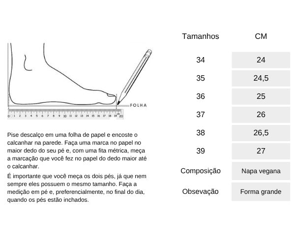 TABELA DE MEDIDAS: