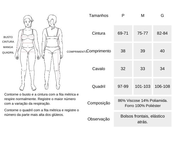 TABELA DE MEDIDAS: